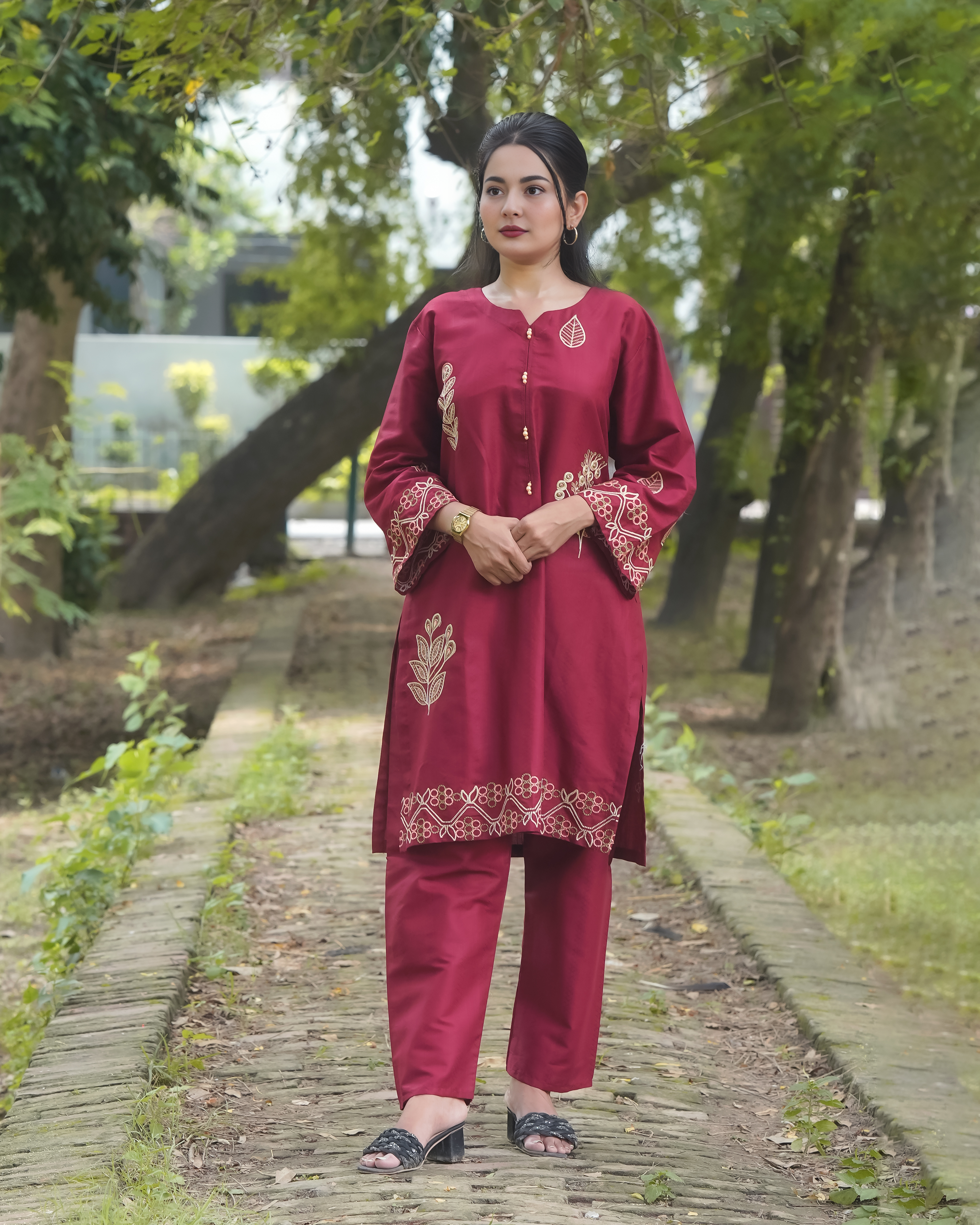 Experience timeless elegance with Naqshé’s 2-piece embroidered cotton suit, crafted for the woman who cherishes refined detail and everyday luxury. Made from premium soft cotton, this suit blends traditional craftsmanship with modern sophistication, making it a perfect addition to your festive or formal wardrobe.