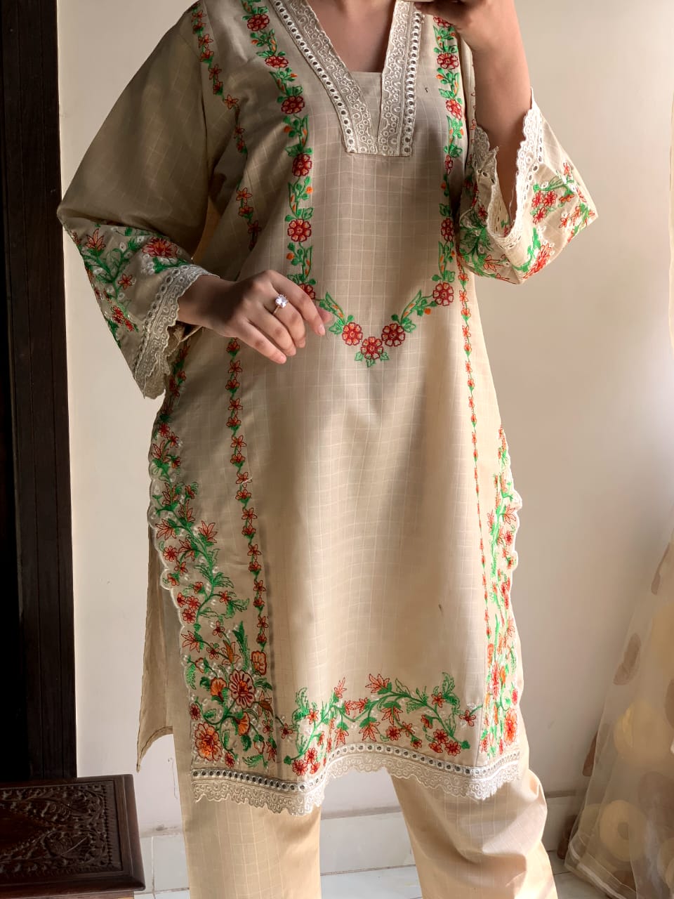 ✔️ Design: Intricate thread embroidery  on the shirt front